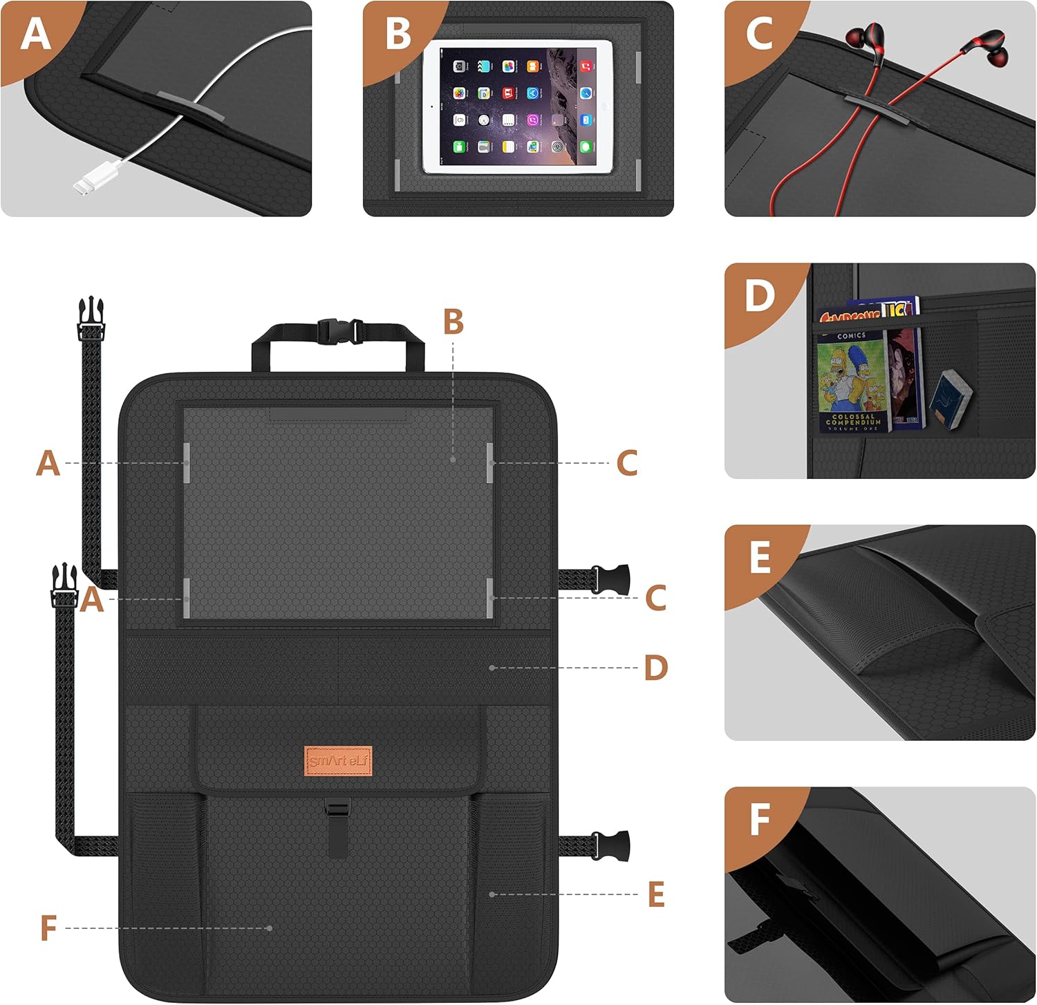- 【NO MORE MESSY CAR FLOORS】- The car kick mat has multiple pockets and an iPad holder, so it also functions are a backseat car Organiser. In this way, your kid’s toys and water bottles will always be within easy reach and long car rides will be calmer.Imagine yourself never having to clean your car seats again. And best of all, the heavy duty elastic straps never inconvenience you, the driver. You won’t even know they’re there!