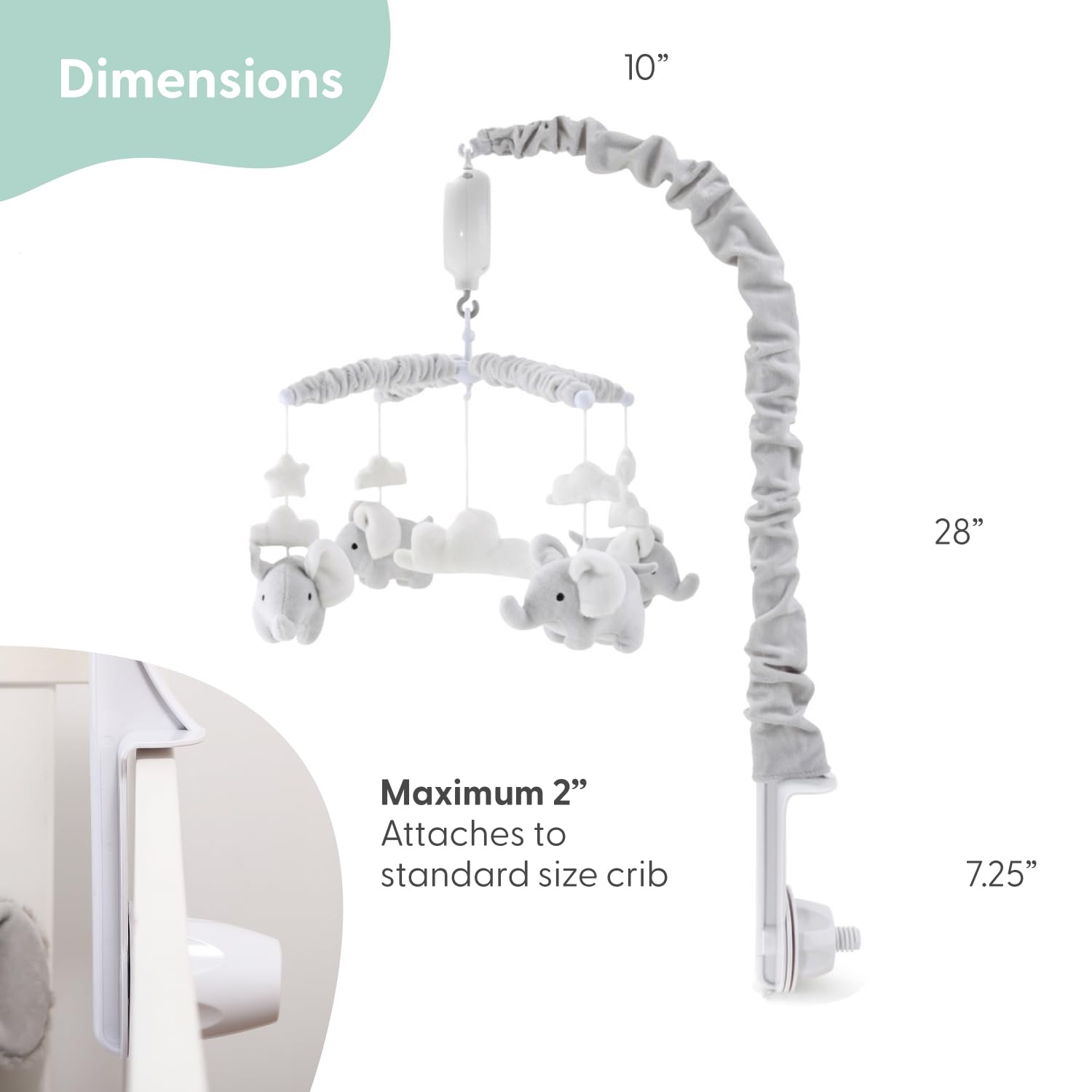 Soft Grey Musical Baby Crib Mobile with 12 Lullabies, Cute Grey Elephant Nursery Decor