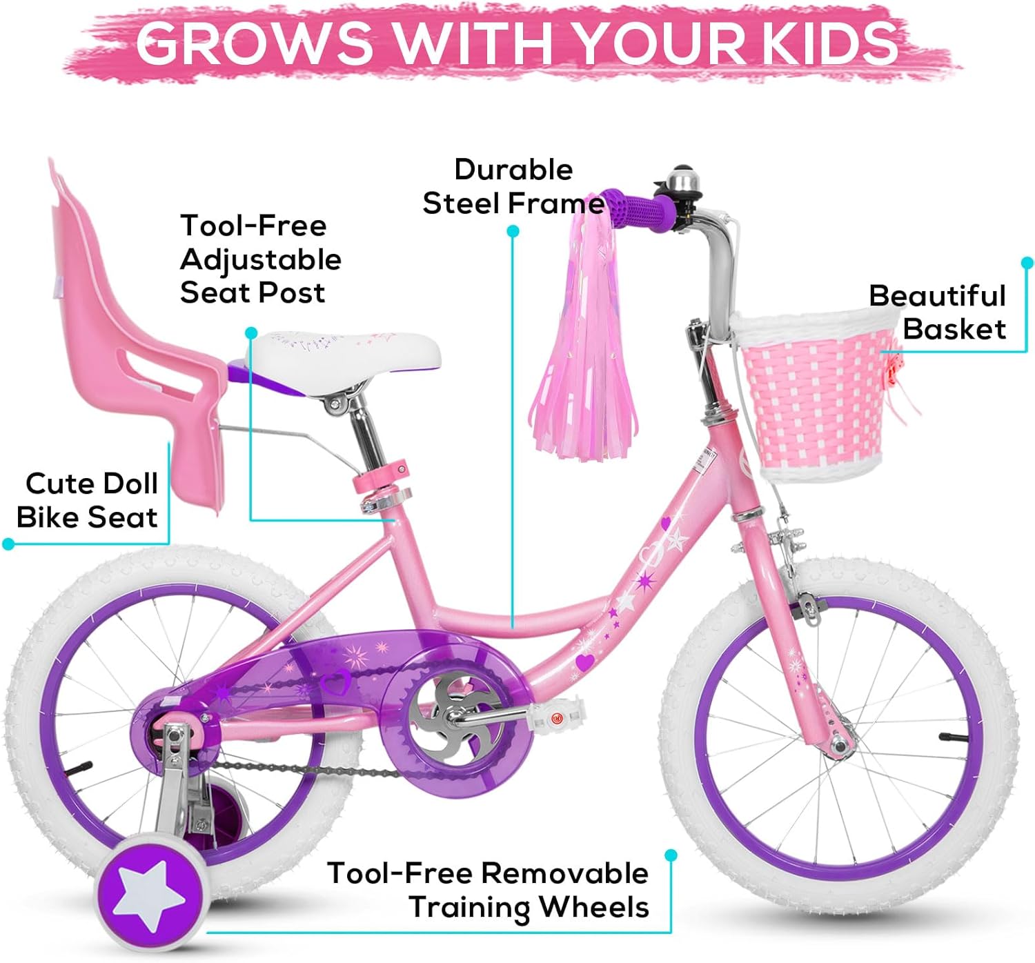 - LOVELY COMPONMENTS: The extremely cute wicker basket to let the kids pack stuffed animals or snacks. Add extra fun to the ride.